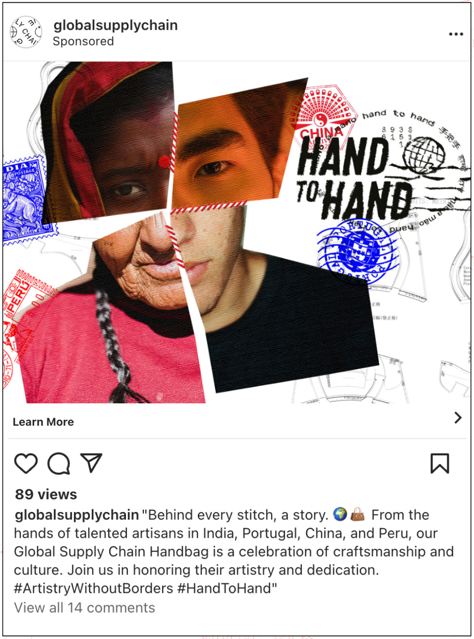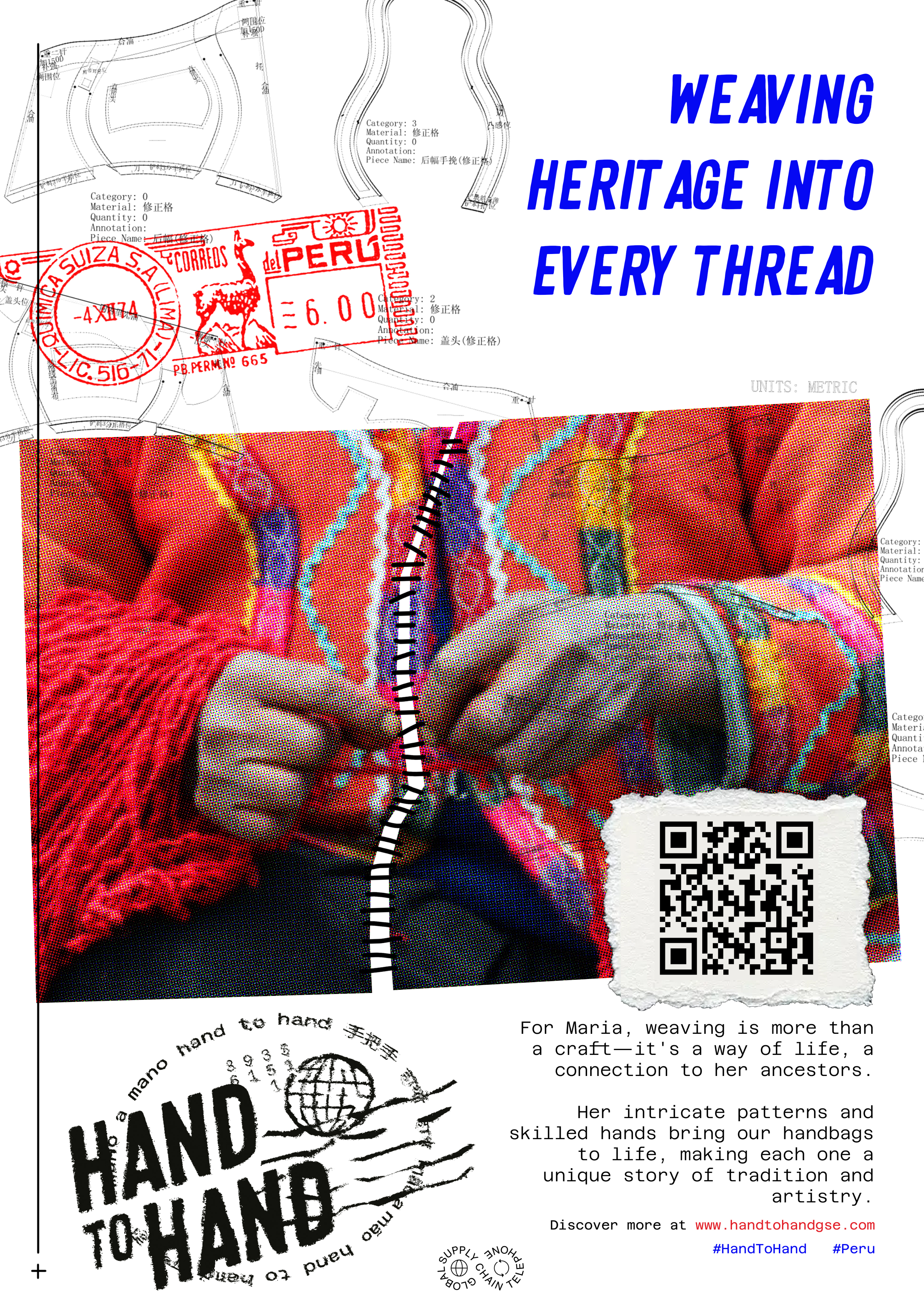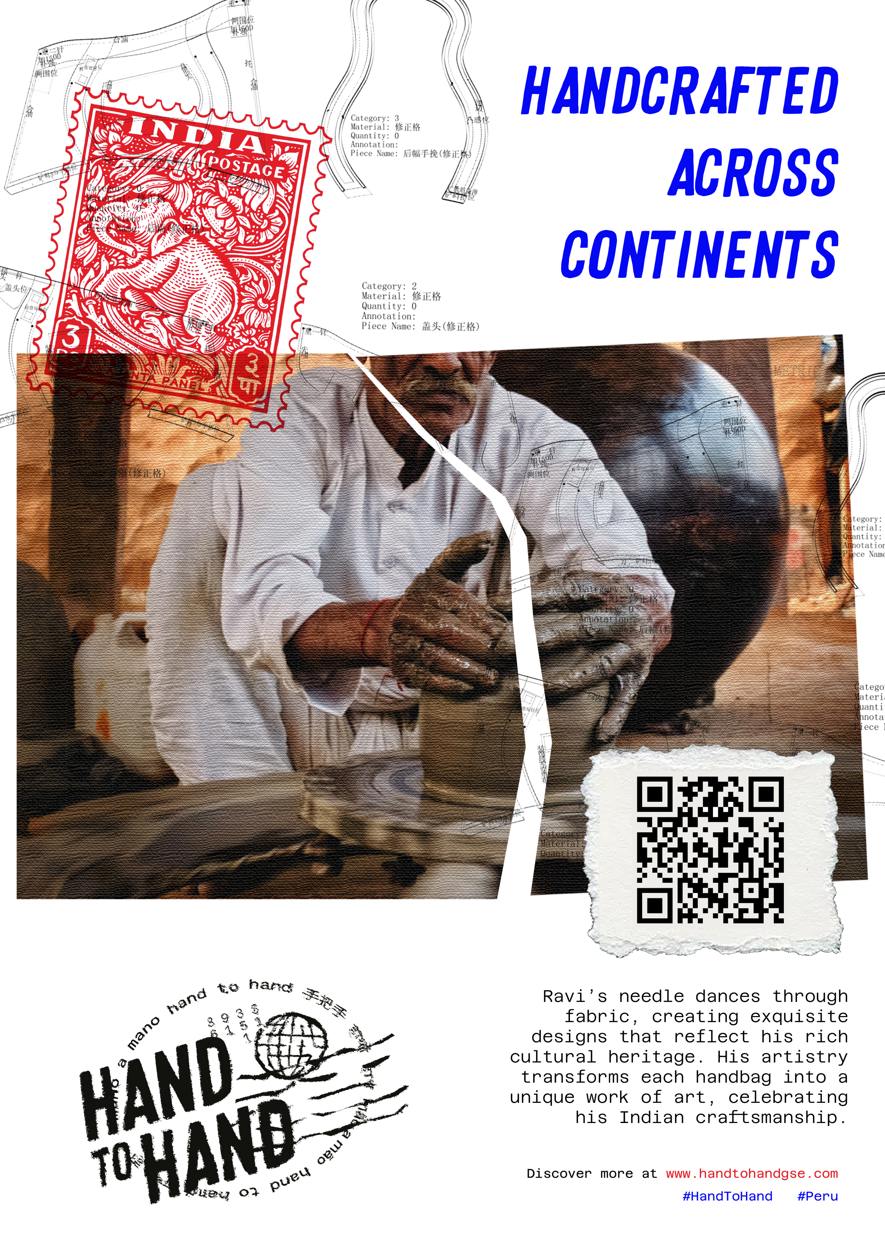 The project shifts focus from brand to artisans in Peru, Portugal, India, and China, with visuals inspired by stamps, stitching, and textures. Posters, social media, a website, and an activation event celebrate global collaboration and reframe luxury as human craft.