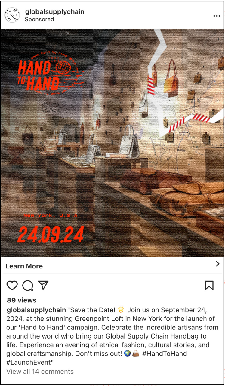 The campaign celebrates the hands behind production with visuals inspired by stamps, stitching, and handmade textures. Posters, billboards, social media, a website, and an activation event highlighted artisan stories and invited audiences to engage through workshops and interactive experiences.